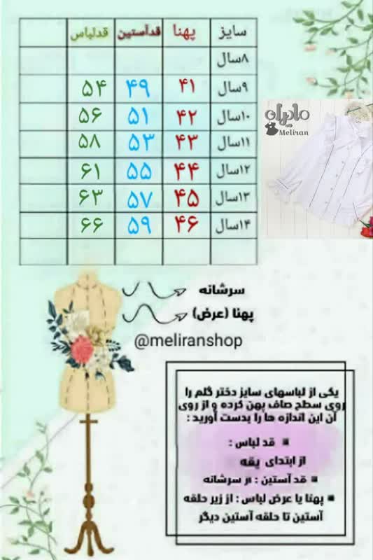قد لباس: از ابتدای یقه تا پایین لباس اندازهگیری میشود.