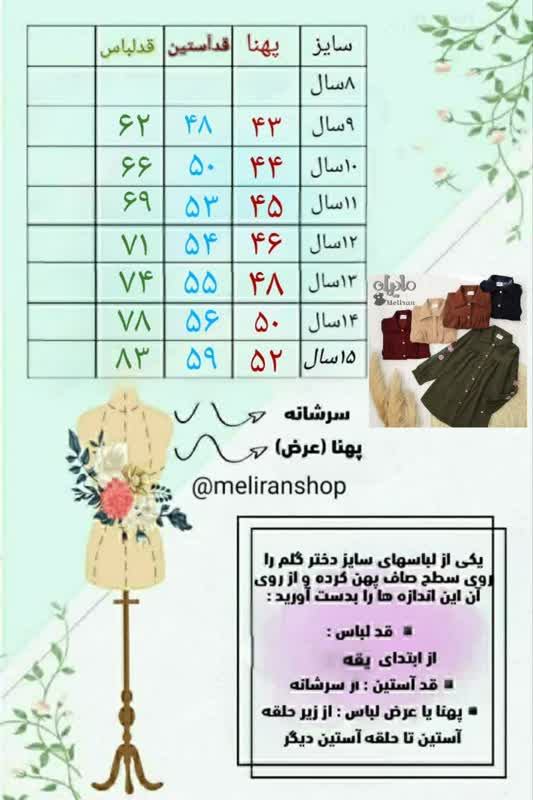 قد لباس: از ابتدای یقه تا پایین لباس اندازهگیری میشود.