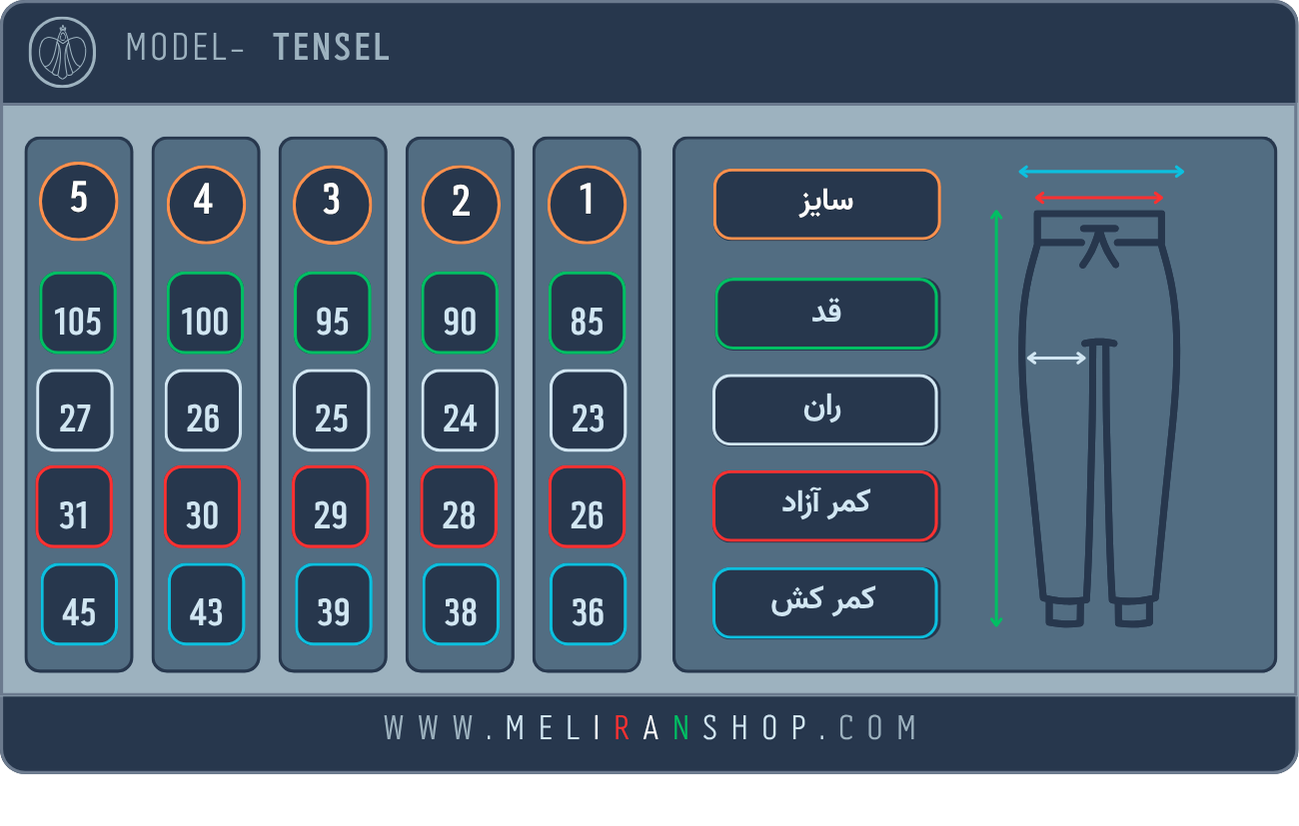 سایزشلوار | سایز1, سایز2, سایز 3, سایز 4, سایز 5 |