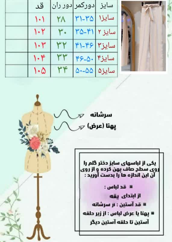 سایزشلوار | سایز1, سایز2, سایز 3, سایز 4, سایز 5 |