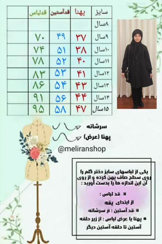 سایزشلوار 9 سال, 10 سال, 11 سال, 12 سال, 13 سال, 14 سال, 15سال