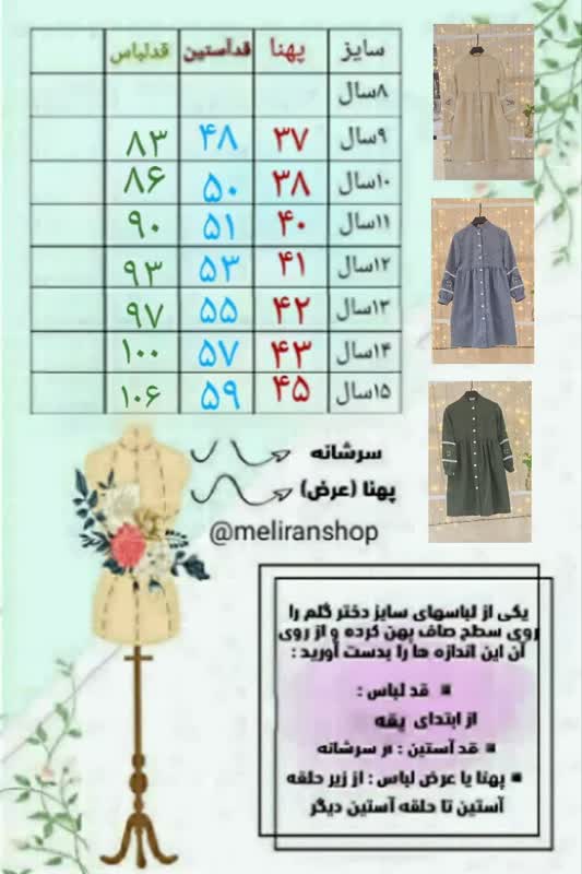 قد لباس: از ابتدای یقه تا پایین لباس اندازهگیری میشود.