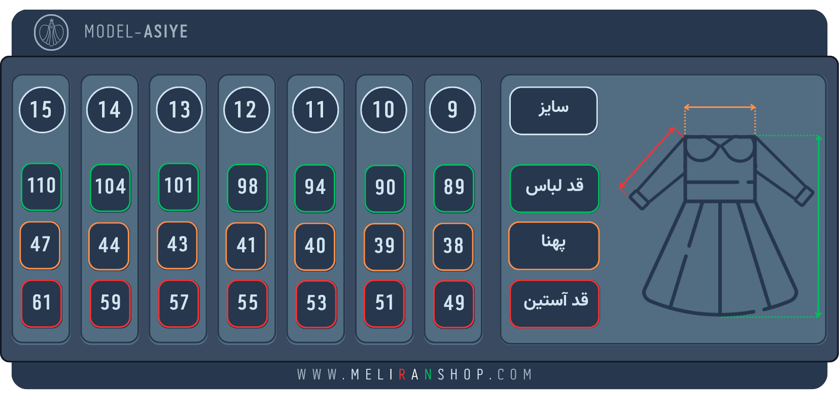 راهنمای انتخاب سایز