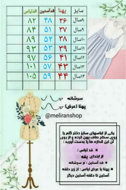 قد لباس: از ابتدای یقه تا پایین لباس اندازهگیری میشود.