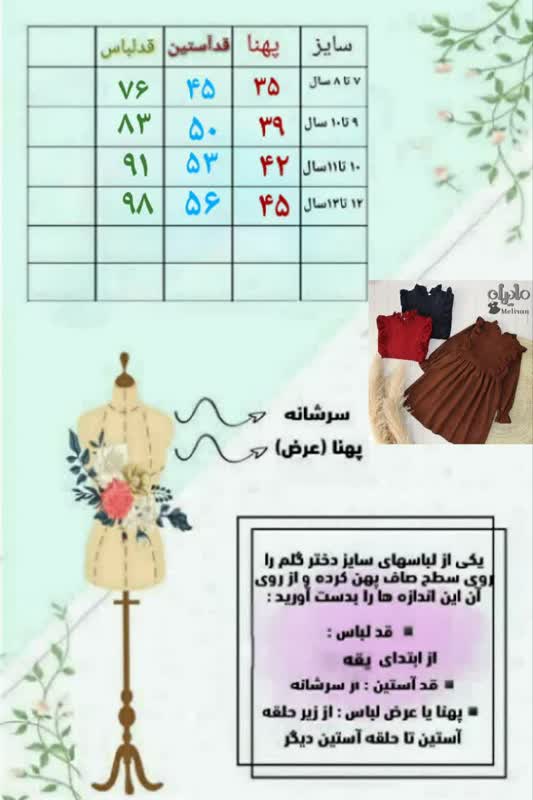 سایزبندی ۷ تا ۱۳ سال